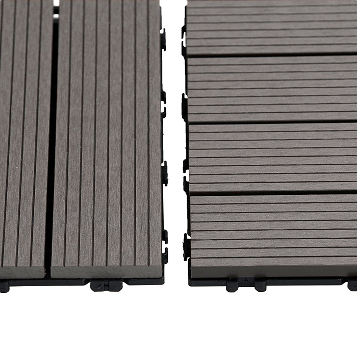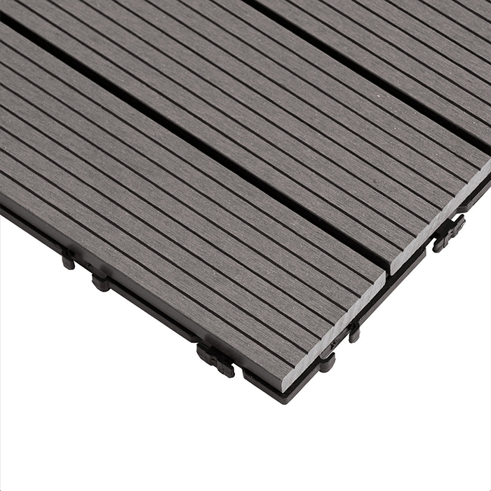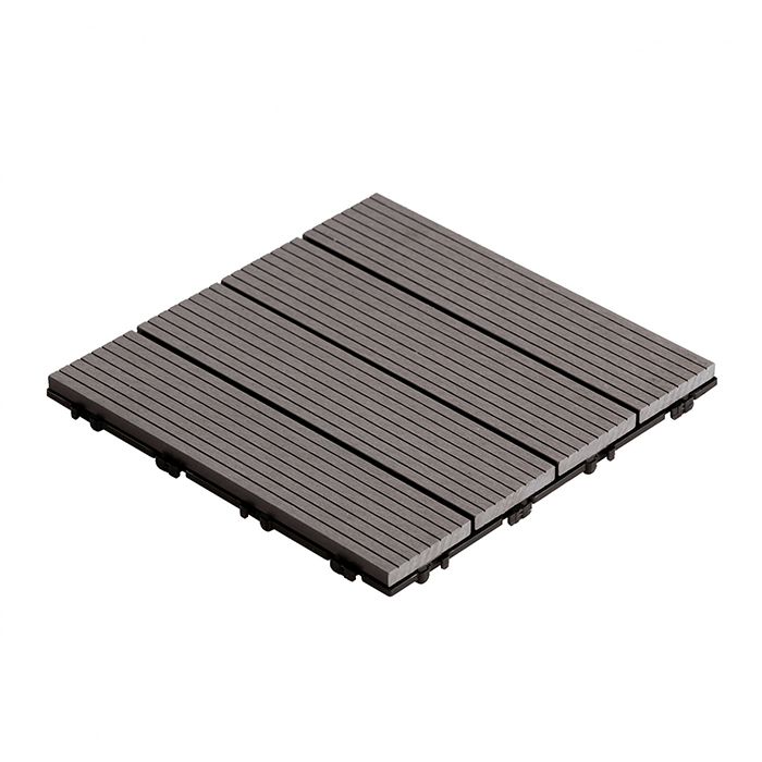 Esta baldosa de composite para exteriores es perfecta si buscas rapidez de instalación y resistencia al mismo tiempo. Además, cuenta con un sistema de drenaje, lo que facilita el escurrimiento del agua y evita acumulaciones.