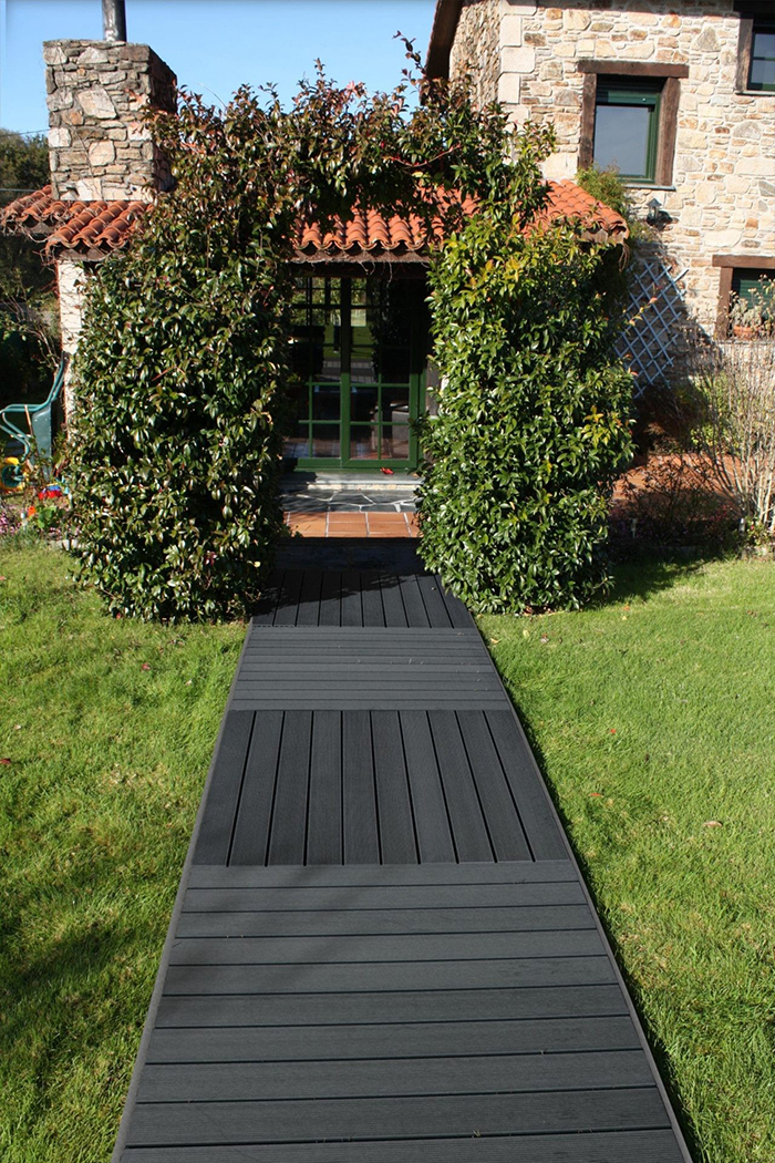 La baldosa composite destaca por su textura y apariencia, aportando un toque sofisticado a cualquier espacio. Su base rastrelada mejora la fijación y garantiza una sujeción segura gracias a su sistema de colocación mediante tornillos.
